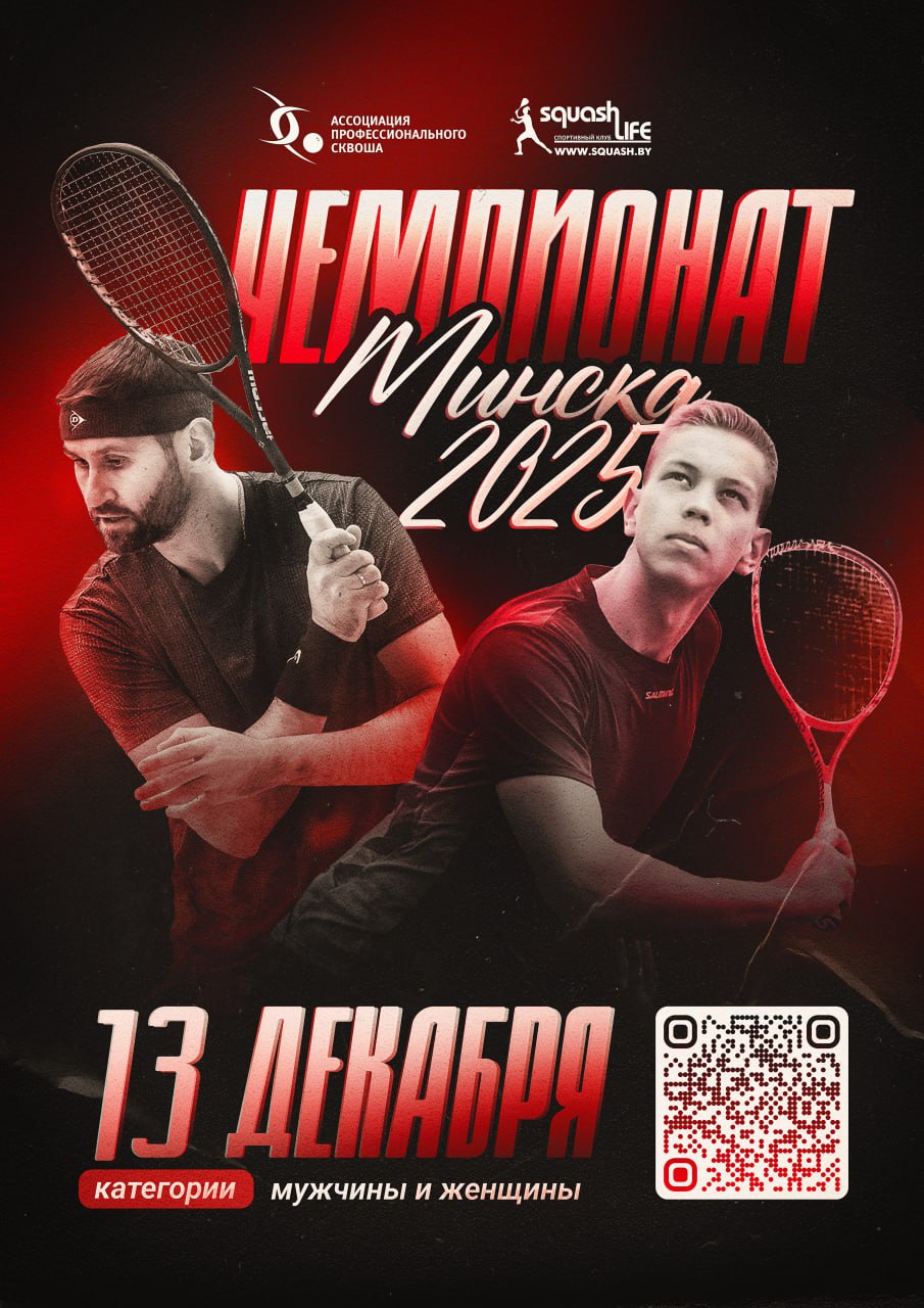 Сроки проведения соревнований: 13 декабря 2025 года. Место проведения соревнований: город Минск, ул. Тимирязева 46А, спортивный центр «Squash-Life».